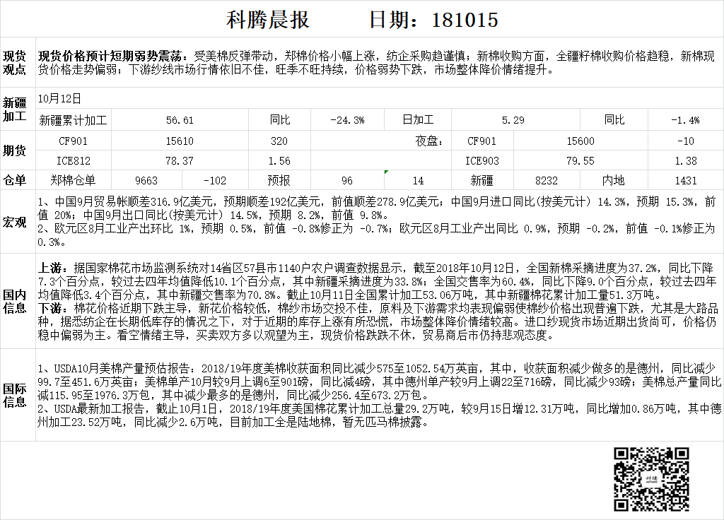 【晨報】2018年10月15日晨報